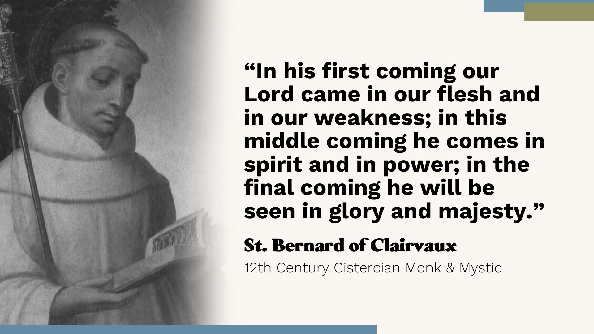 St. Bernard summarizes the Advent mystery. Although it can seem distant and abstract – Jesus was actually a real baby born in a tiny town in obscurity. Christians believe that God is born, “incarnated” as the person of Jesus Christ.